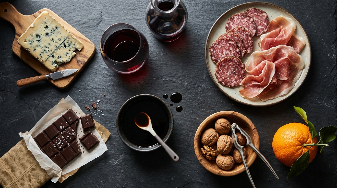 - Red wine + aged cheese together (tyramine double hit)
